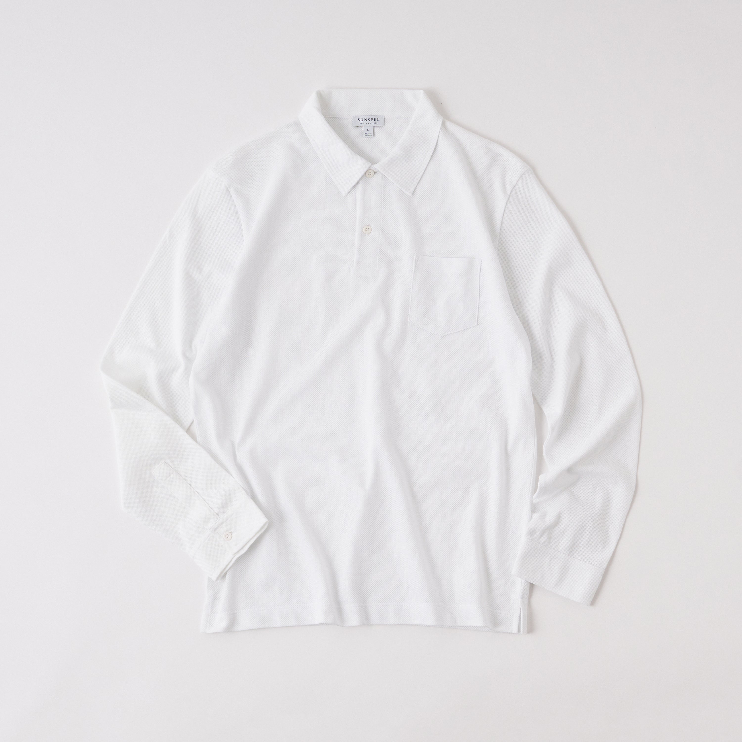 精悍な印象がある白地に胸ポケットのみのミニマルなデザインが心をくすぐる、かの有名な「リヴィエラ・ポロシャツ」の長袖バージョン。軽量で通気性に優れ、抜群のやわらかさのメッシュ素材が快適なプレイを約束。¥26,180(サンスペル カスタマーサポート Tel.050-3562-1860)
