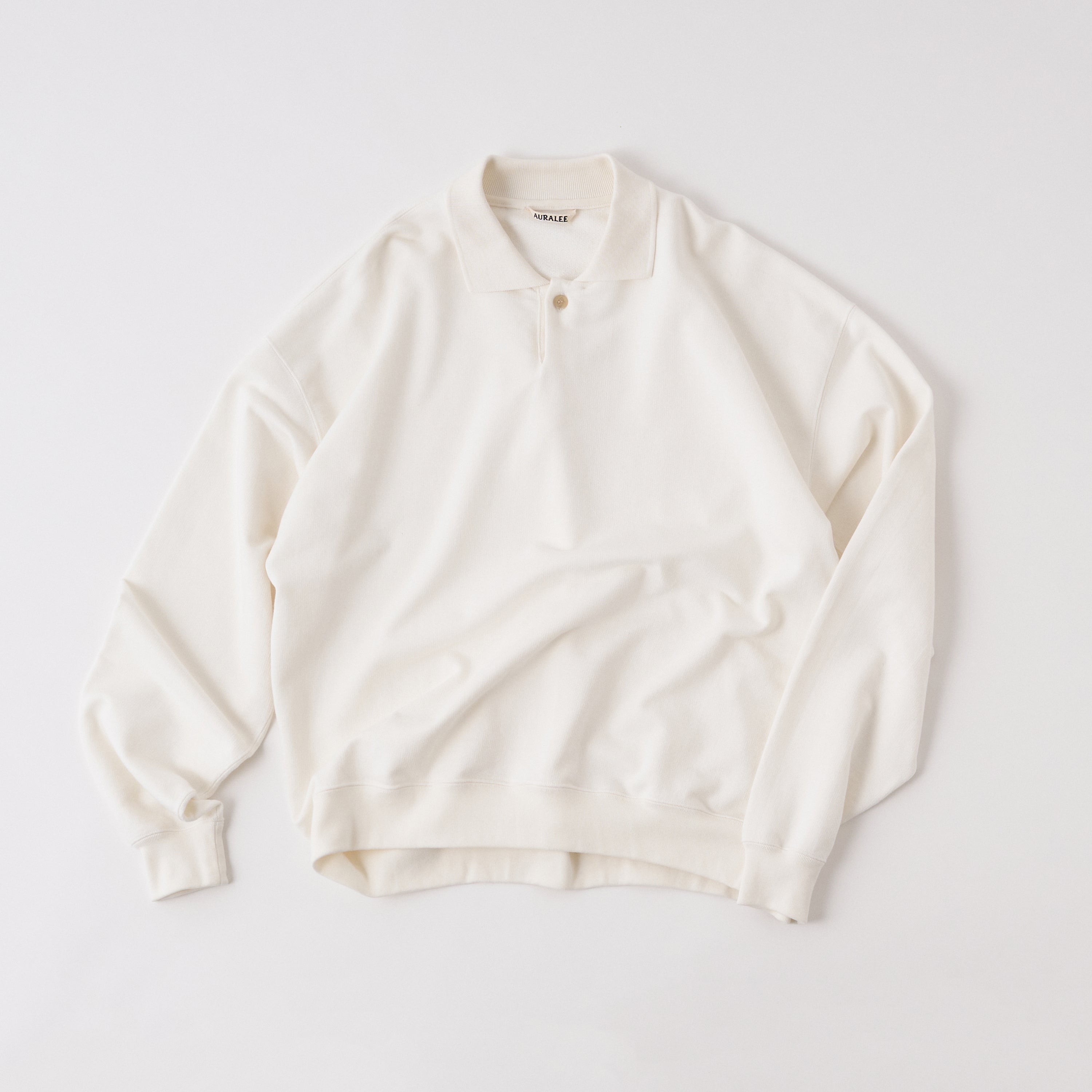 日本屈指の生産背景でつくられた、服好きにはたまらないこだわりの一着。超長綿のピマコットンと弾力のある空紡糸を使って編まれたスウェット地のポロシャツは、薄手ながら弾力があるしっかりとした着心地が自慢。¥33,000(オーラリー Tel.03-6427-7141)