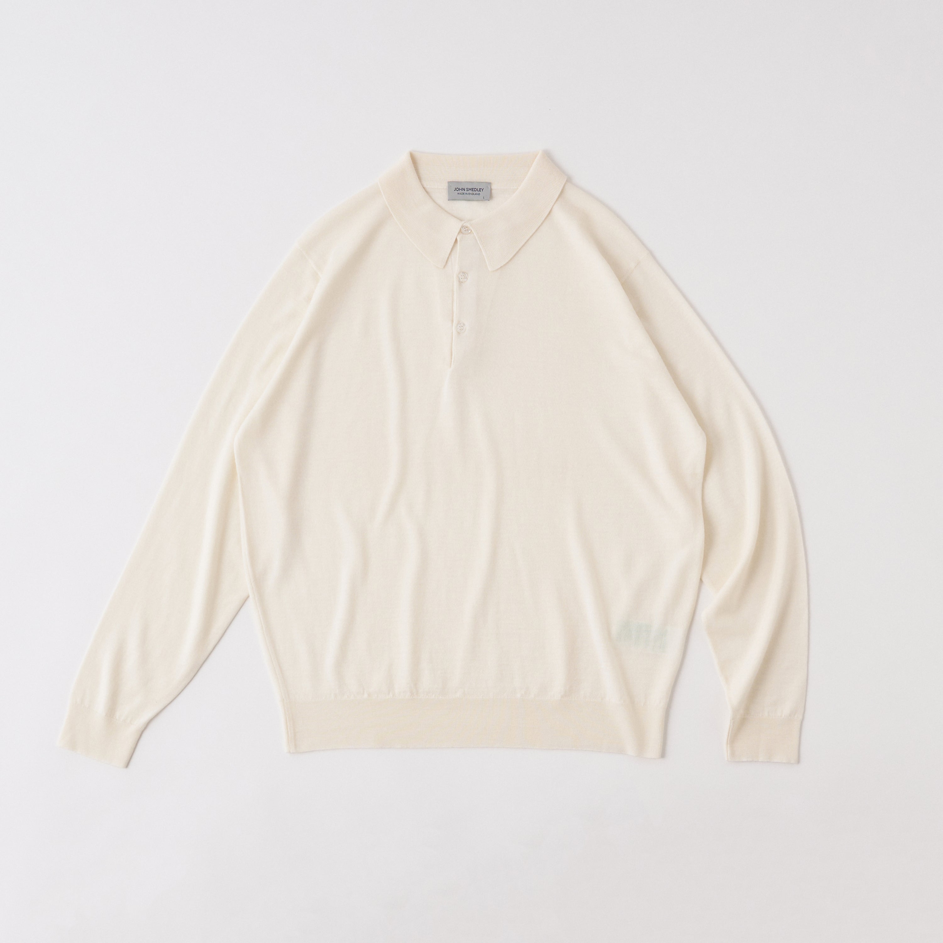 エクストラファインメリノウールを使った長袖ポロ。薄手でやや透け感のある上品な質感を持ち、日本人の体にフィットしやすい「30G MODERN FIT」がゴルフウェアには最適。少し黄みがかったアイボリーホワイトが上品。¥53,900(ジョン スメドレー カスタマーサービス www.johnsmedley.jp/item/detail/1_1_KNOLL/BLA