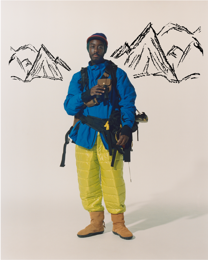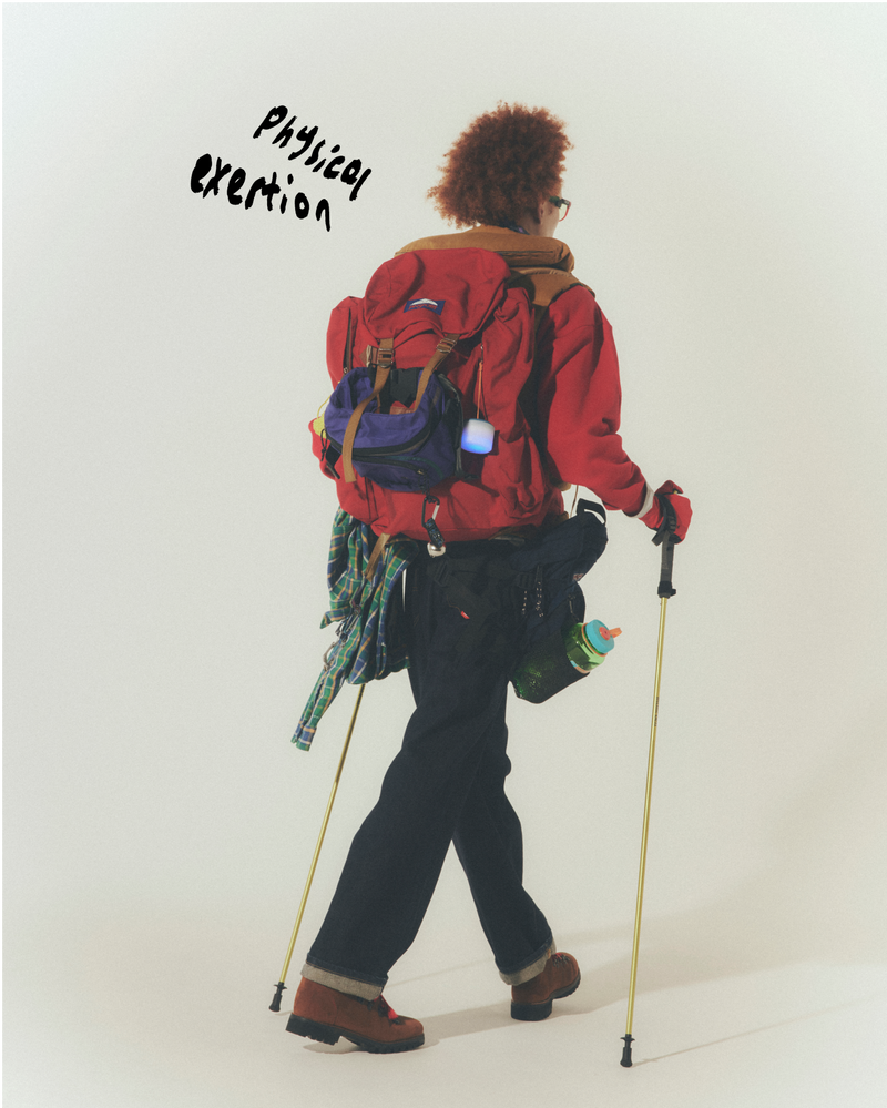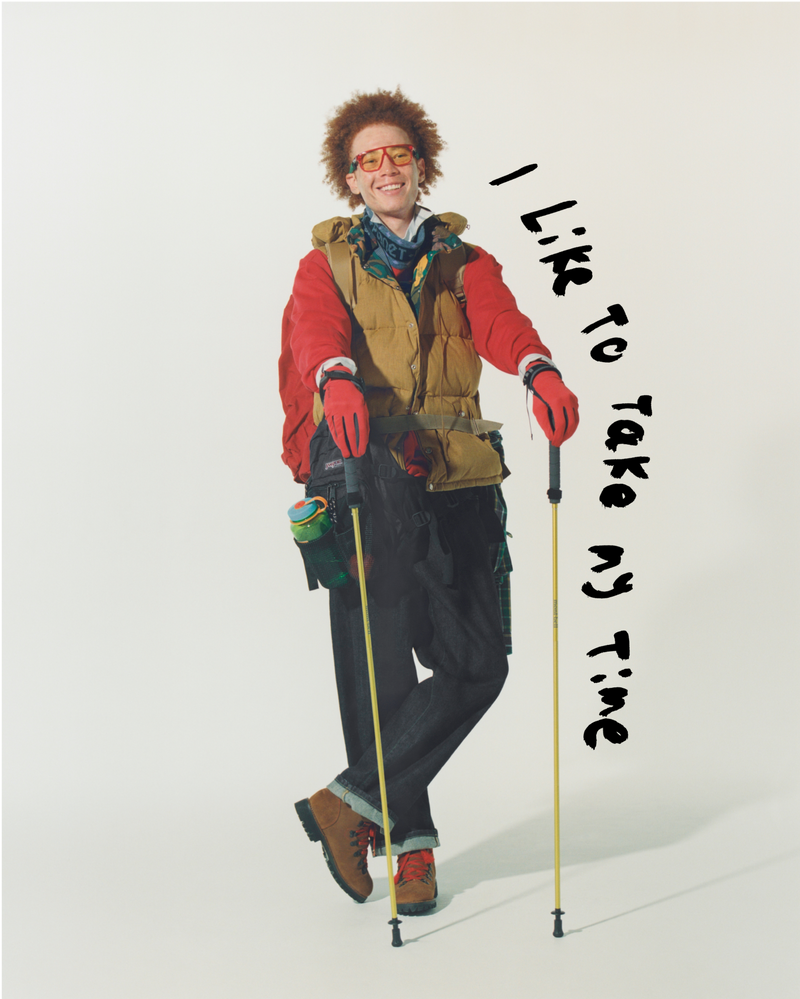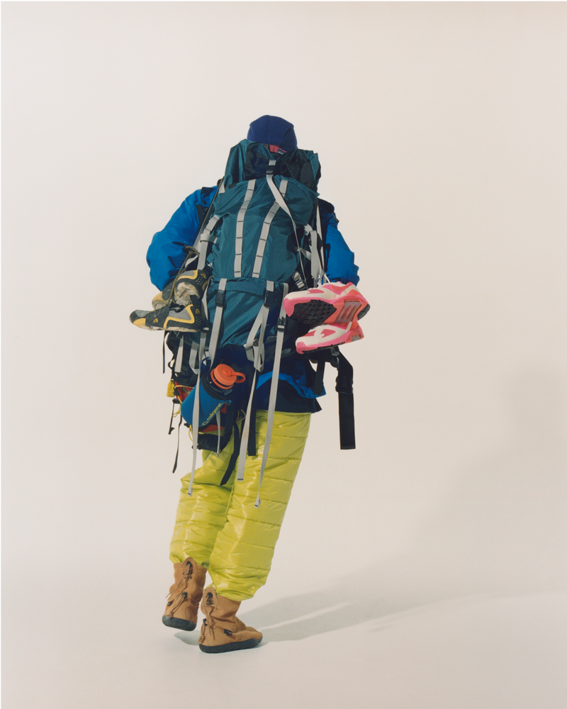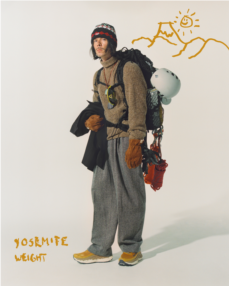 〈ナイスネス〉ダウンベスト ¥176,000(イーライト Tel.03-6712-7034)、〈ライフウェア〉スウェット ¥11,000、〈マイナープラネットニューヨーク〉ヘアバンド ¥7,399(スティーブン アラン フタコタマガワ Tel.03-5491-7511)、〈イレーヴ〉シャツ ¥37,400(イレーヴ Tel.03-5785-6447)、〈キャプテン サンシャイン〉カットソー ¥17,600(キャプテンサンシャイン Tel.03-6277-2193)、〈ノア〉パンツ ¥38,500(ノア クラブハウス Tel.03-5413-5030)、〈マーモット〉グローブ ¥6,050(サードシップ info@marmot.jp)、〈オークリー〉サングラス ¥12,870(ルックスオティカジャパン カスタマーサービス Tel.0120-990-307)、〈ユーズド〉リュックに巻いたシャツ ¥25,300(サファリ1号店 Tel.03-5378-9230)、〈ナルゲン〉ボトル ¥2,640(ハイマウント Tel.03-3667-4545)、〈モンベル〉トレッキングポール ¥7,260(モンベル・カスタマー・サービス Tel.06-6536-5740)