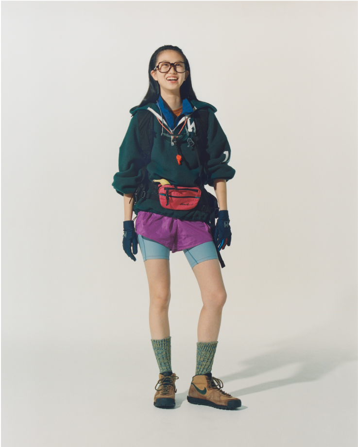 〈アンスクリア〉フーディー ¥49,500(アマン Tel.03-6805-0527)、〈ゴールドウイン〉ベスト ¥28,600、Tシャツ ¥14,300、中に履いたショーツ ¥11,000(ゴールドウイン カスタマーサービスセンター Tel.0120-307-560)〈ユーズド〉ショーツ ¥2,200(サファリ4号店 Tel.03-5913-8377)、〈ミレー〉グローブ ¥4,950(ミレー・マウンテン・グループ・ジャパン Tel.050-3198-9161)、〈フォックス40〉ホイッスル ¥1,650(ハイマウント Tel.03-3667-4545)、〈アイヴァン 7285〉メガネ ¥58,300(アイヴァン 7285 トウキョウ Tel.03-3409-7285)