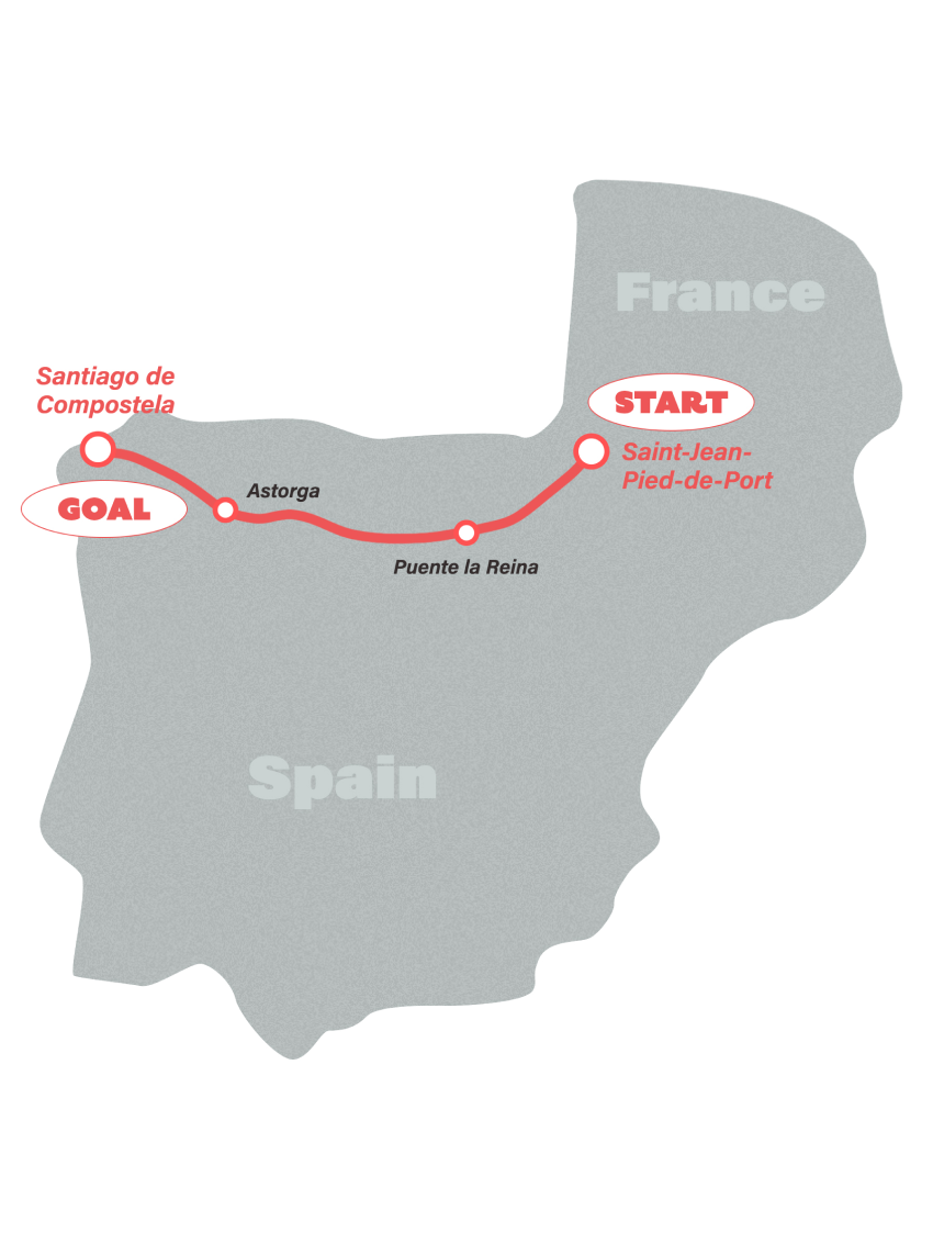 カミーノ・デ・サンティアゴとは中世から続く、巡礼の道。1993年に道として世界ではじめて、世界遺産に登録された。フランスの道、北の道、古代の道など複数あるが、上沢勇人さんが歩いたのはサンジャン・ピエ・ド・ボーという南仏の町からサンティアゴ・デ・コンポステーラまで800キロを歩く「フランス人の道」。