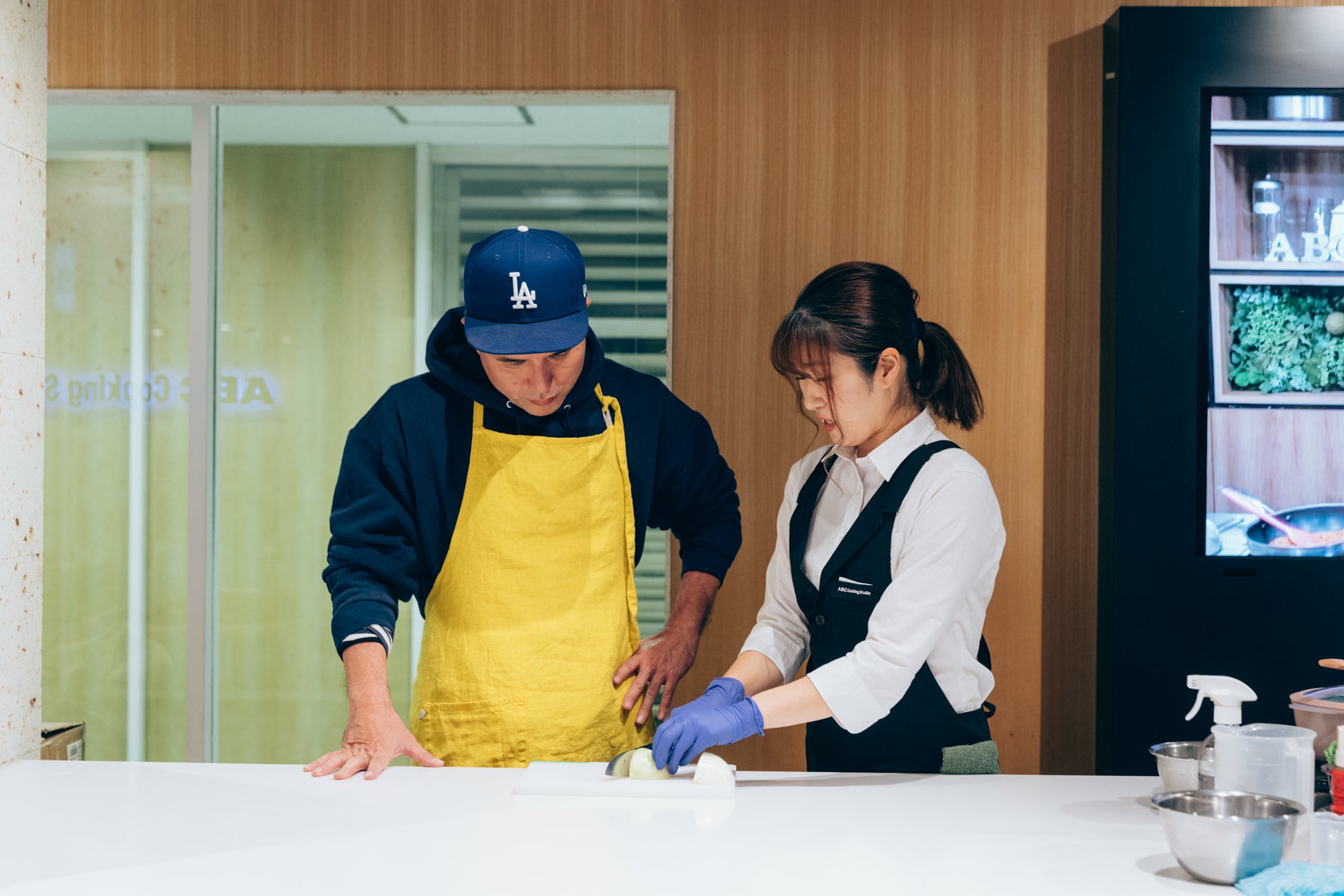 梶:「ABC」に入って一番実感してるのは、包丁との距離だなと思っていて。前までは包丁が家になかったけど、料理教室をきっかけに包丁を買ったら、ちょっと果物とかを食べるときも自分でフルーツを剥いたりする。それは大きな進歩でしたね。