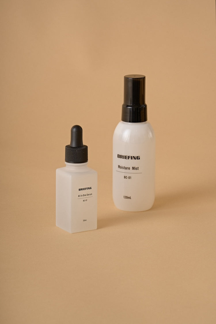 ミリタリー由来のデザインを落とし込んだバッグなどを筆頭に、ゴルフアイテムやアウトドアギアなど幅広いアイテムが人気の〈ブリーフィング(BRIEFING)〉も、コスメをリリースしているってご存知で? アウトドアシーンで使いたいボディケアアイテムを「Cosme Kitchen」監修のもと開発し、〈ブリーフィング コスメティックス(BRIEFING COSMETICS)〉として展開。「オールインワンセラム」は、日中に浴びた日差しによる乾燥から肌を守り、しっかり潤いを届けるので外遊び好きにぴったり。さっぱりとした使用感が使いやすく、化粧水、美容液、乳液のスキンケアがひとつで完了する。
