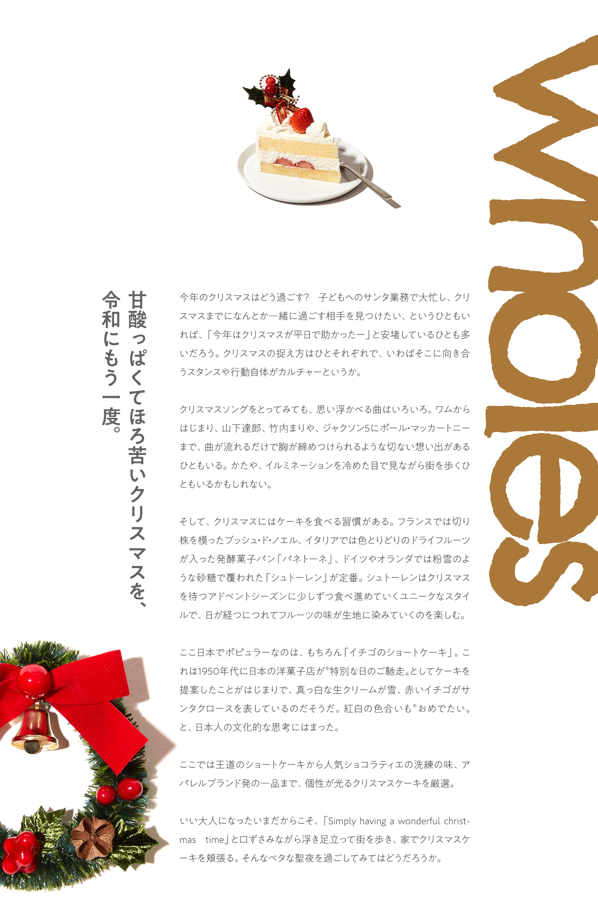 バブルの時代には狂騒の一大イベントだったクリスマスも昨今ではおとなしいもので、それはそれでなんだか寂しい。令和になっても自宅でご馳走を囲み、仕上げにクリスマスケーキを頬張る。そんなベタなクリスマスナイトを満喫したっていいじゃないか。いま食べてみたいクリスマスケーキをヒップな目線で集めてみた。