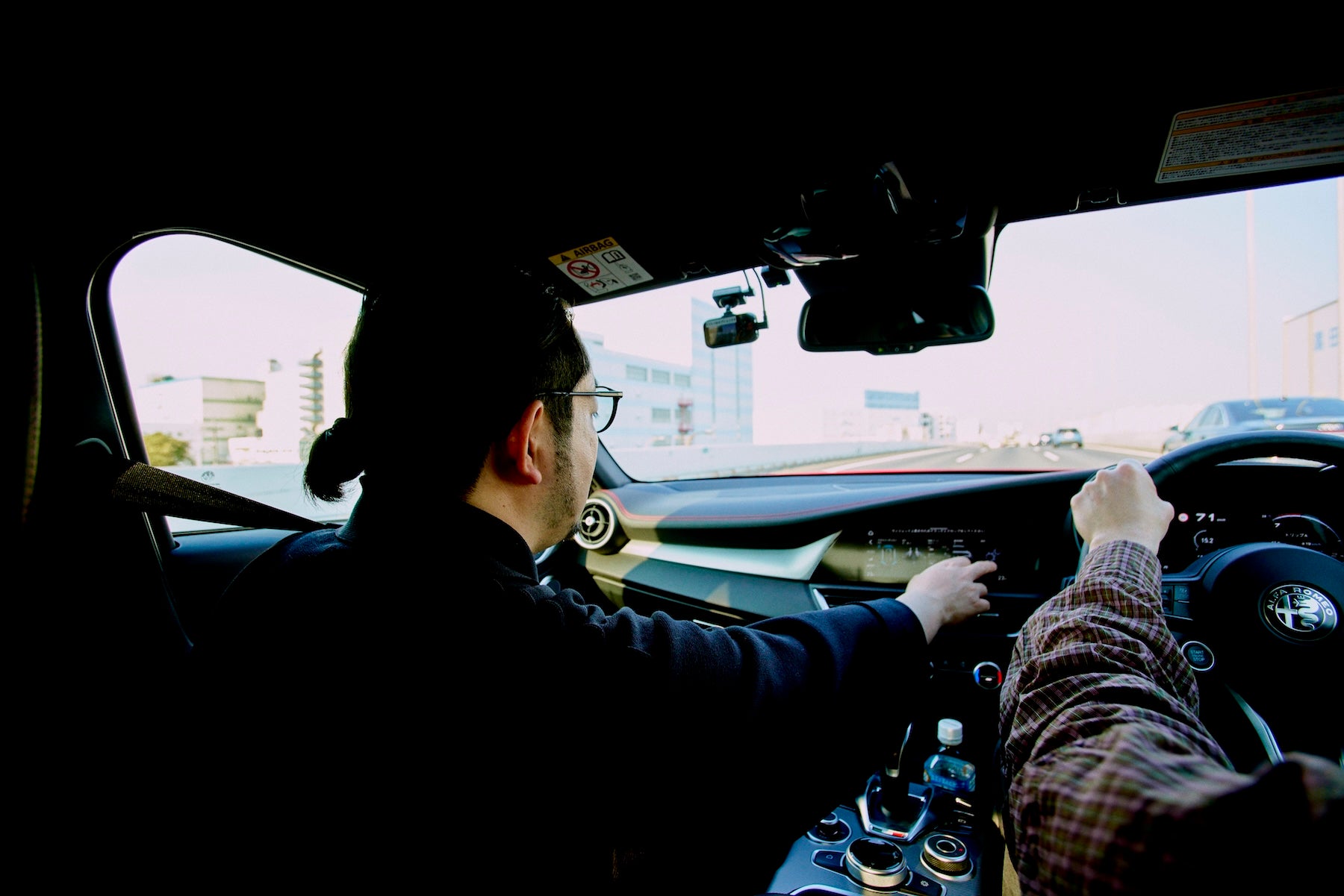 "It's been a long time since I even sat in the passenger seat. The view from a seat without a steering wheel and the different eye level made it a refreshing drive. I've always liked the rugged look of American cars, but the refined design of these Italian cars is also attractive. The colors of the Italian flag are everywhere, the wheels have a unique design, and I think the attention to detail is unique to Italy. Also, the feeling of being one with the car, the feeling of gripping the road that is unique to sports cars, and the quiet interior were the charms of this Giulia Tributo Italiano. But I guess I prefer a higher eye level after all (laughs)."