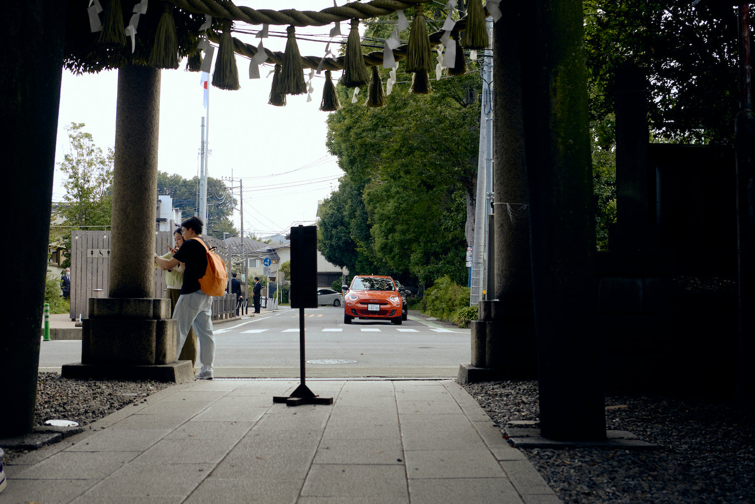 This is not about our guest, but the catchphrase for the "600e". Well, somehow it feels like it applies to our guest too... Sitting in the passenger seat that day was Mami Hasegawa, who worked as a press reporter at a certain major select shop for many years, and has been working as a freelancer since this year. Most people get flustered when operating the navigation system in a car they are driving for the first time, but she smoothly and accurately entered the directions to our destination, Hikawa Shrine in Kawagoe, Saitama, into the navigation system. She really is "cute but reliable".