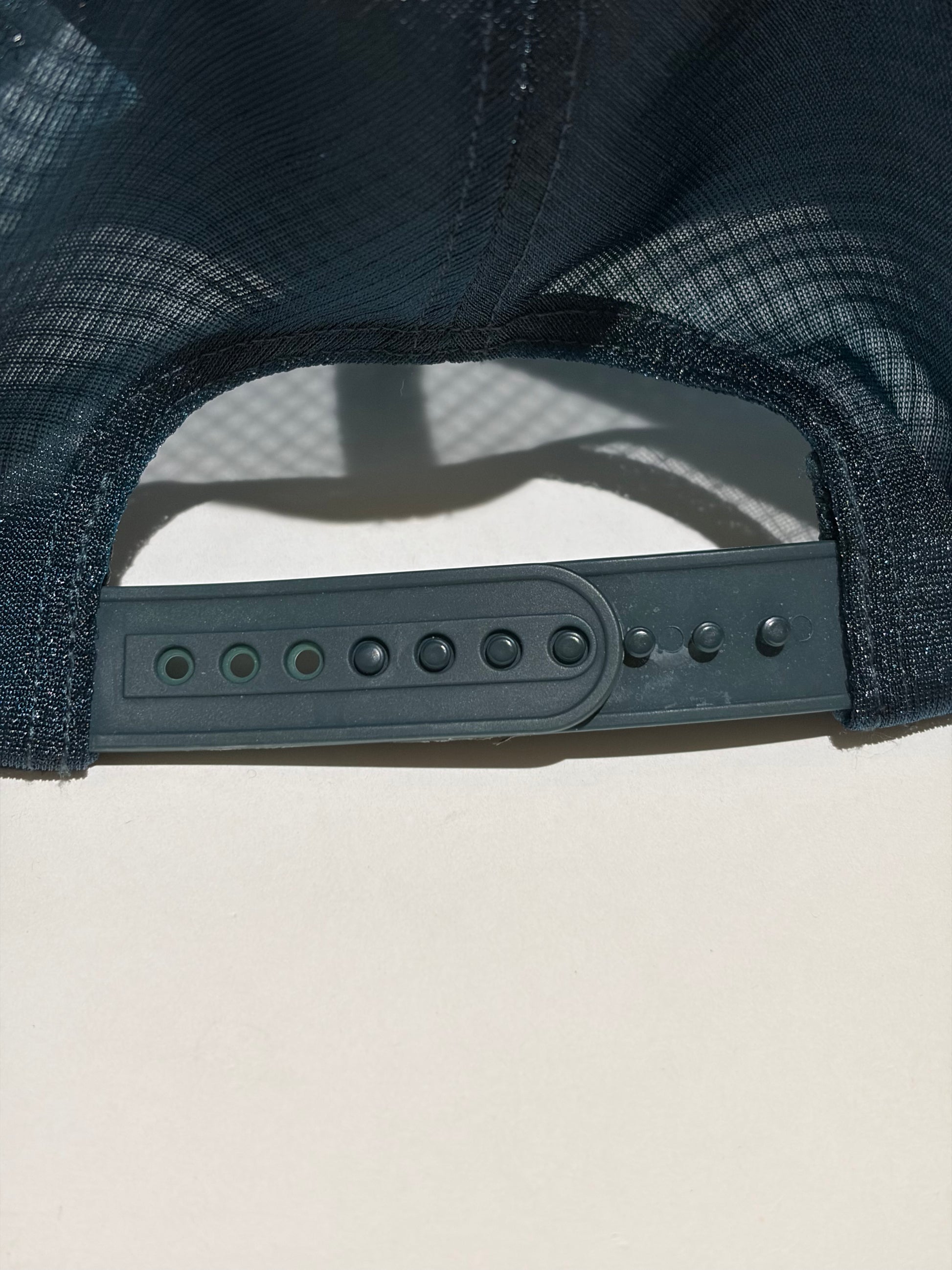 編集部より:深いネイビーカラーが目を引くメッシュキャップ。フロントのロゴが目立たないところもポイントです。スナップバックでサイズ調整ができるようになっています。