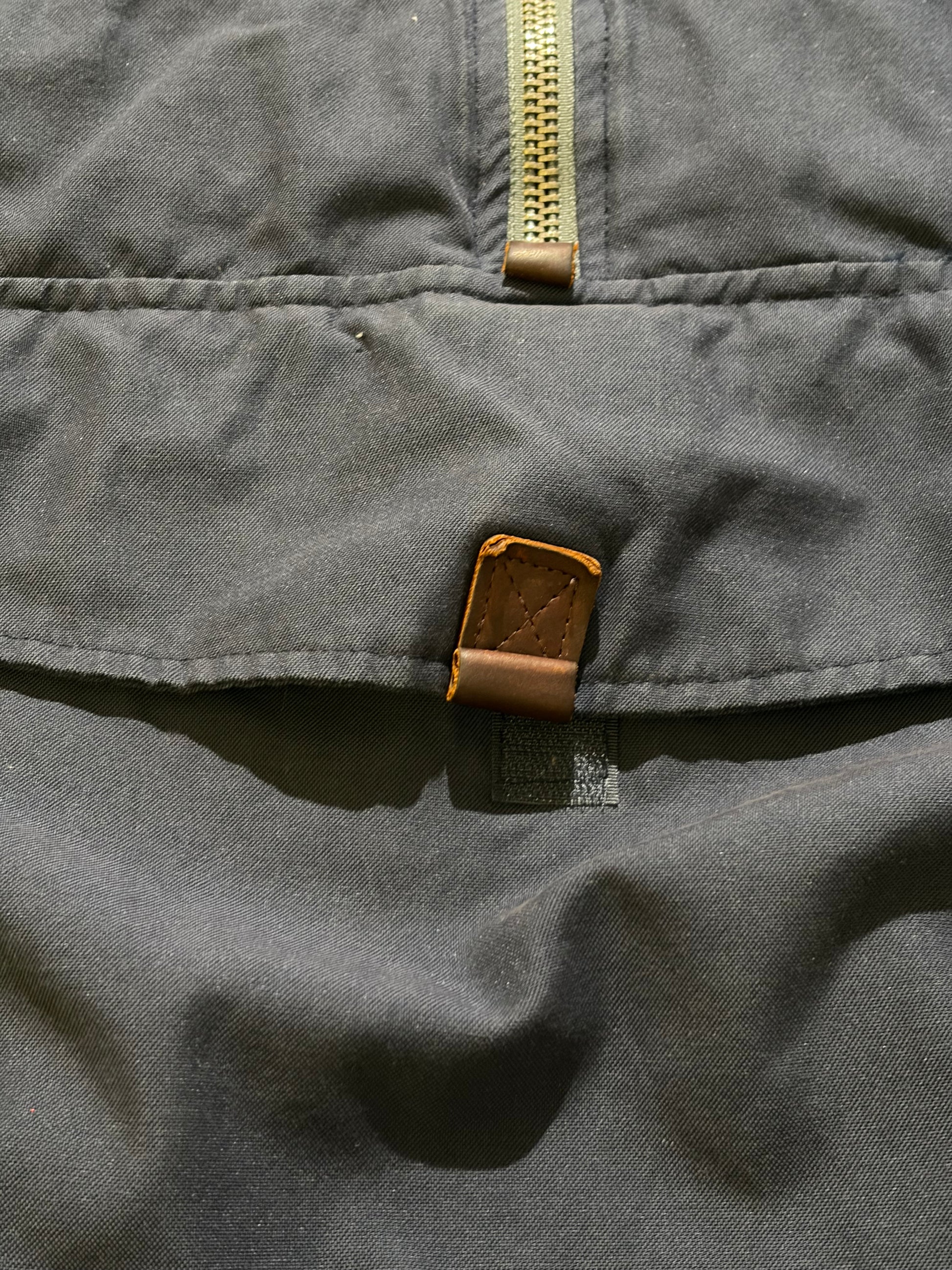 90年代の一着は、コットンナイロンの生地とフードの裏地がチェックがポイント。裾のドローコードを使えば、着丈の調節ができます。
