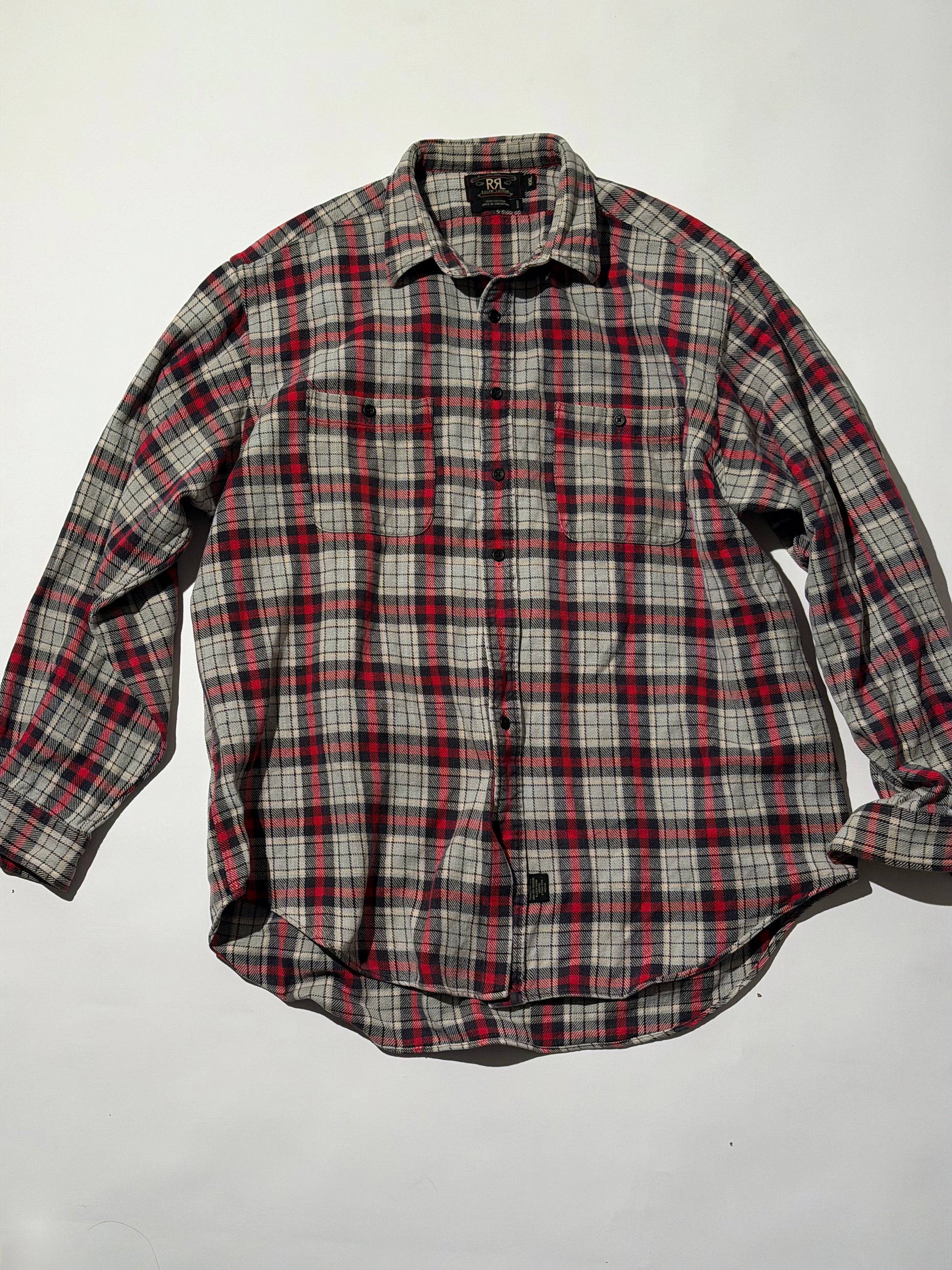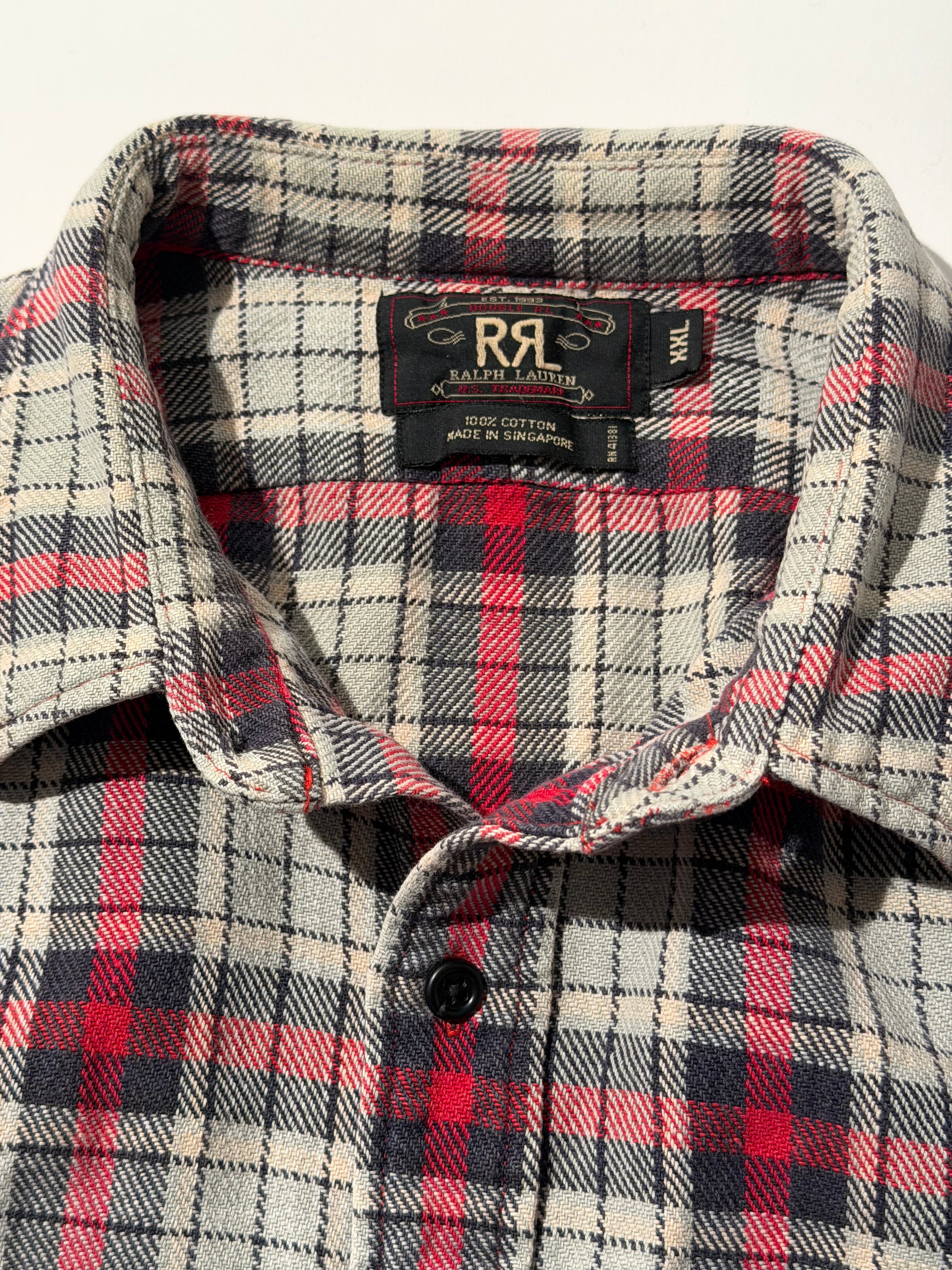 〈RRL〉が誕生した初期、93年~98年の三ツ星タグ付きのヘビーネルシャツです。XXLで着丈が長く、アウター的といいますか、羽織るイメージで着ると面白い。計算されたオーバーサイズじゃないところがいいんです。