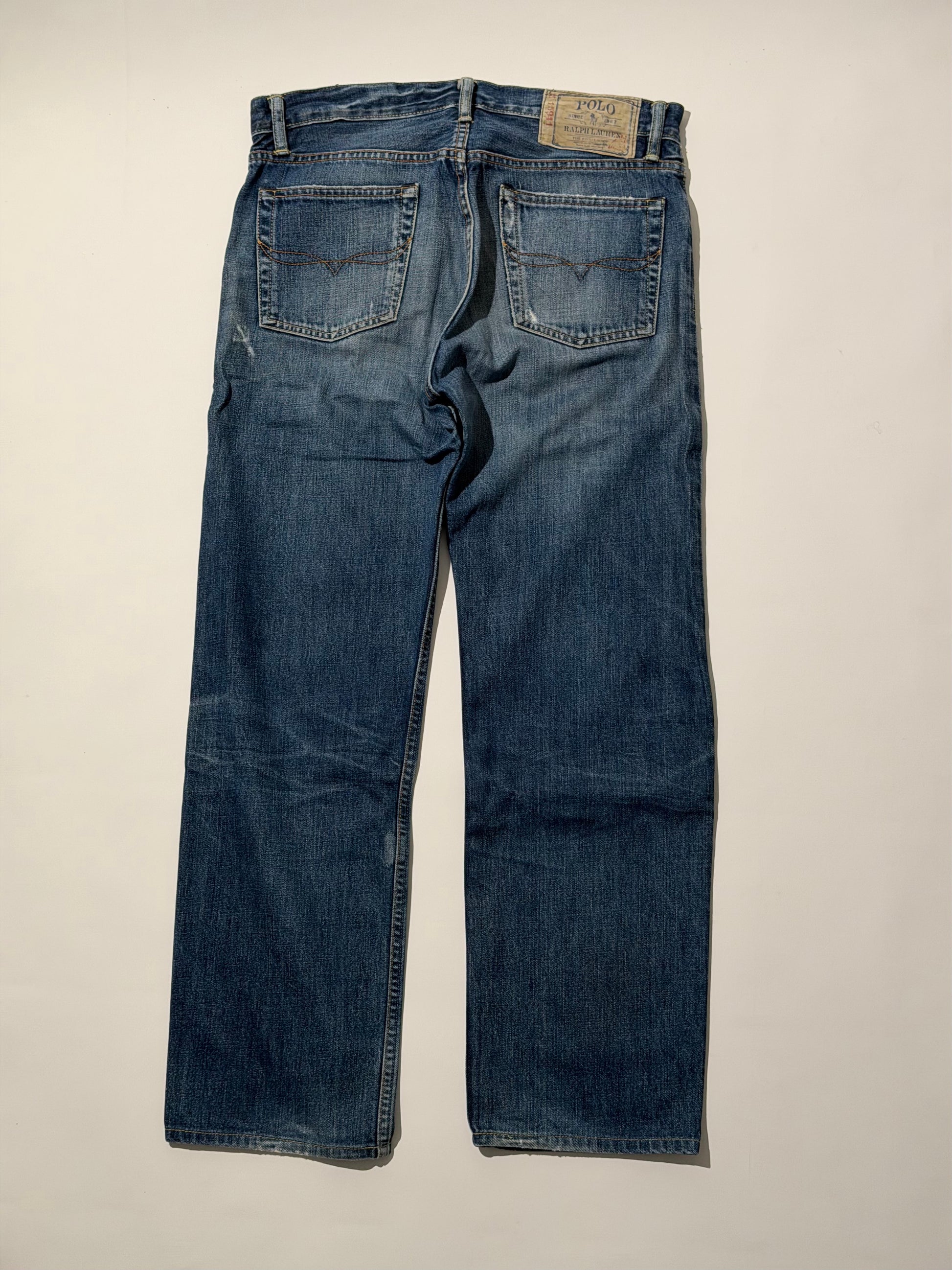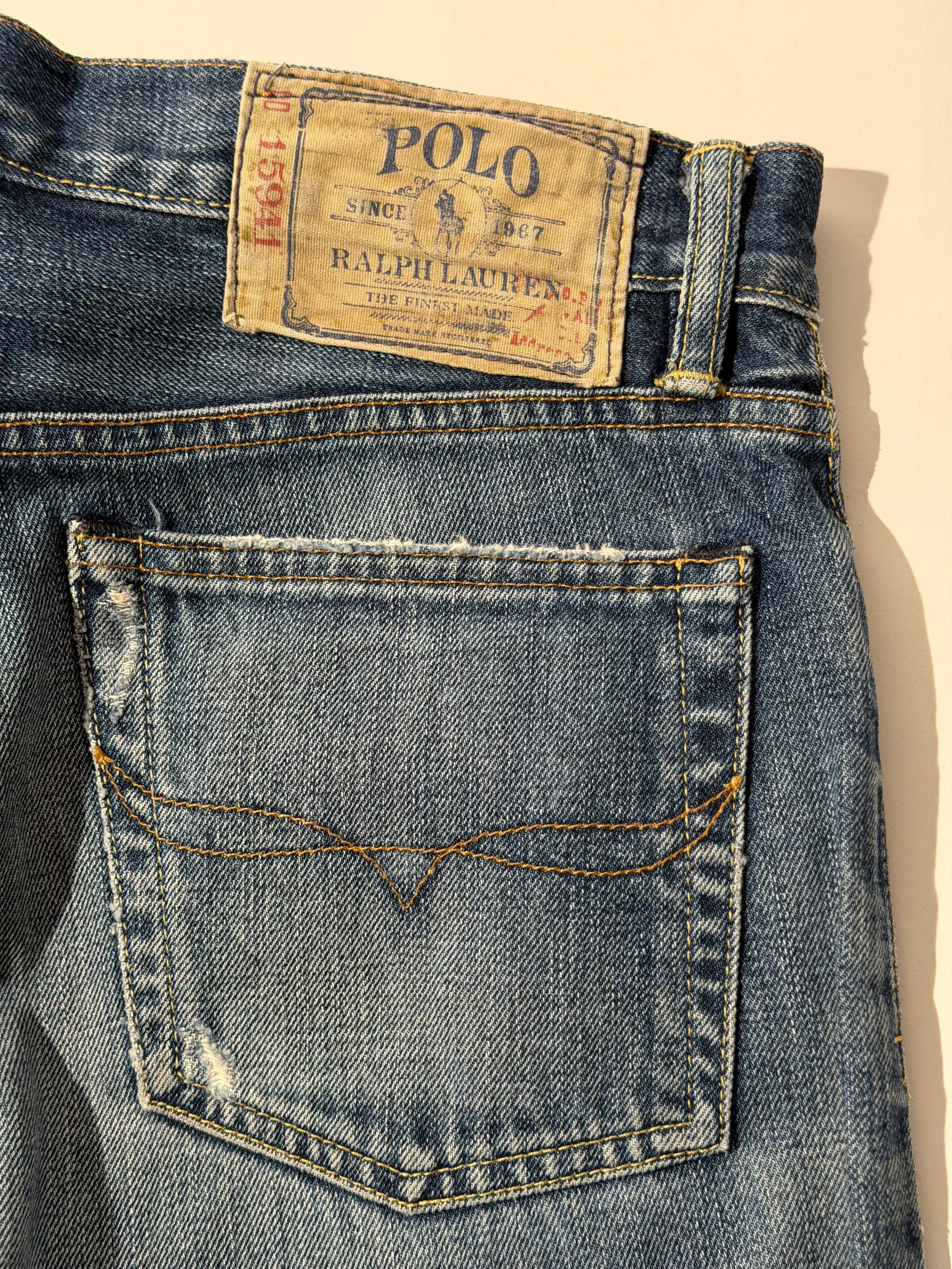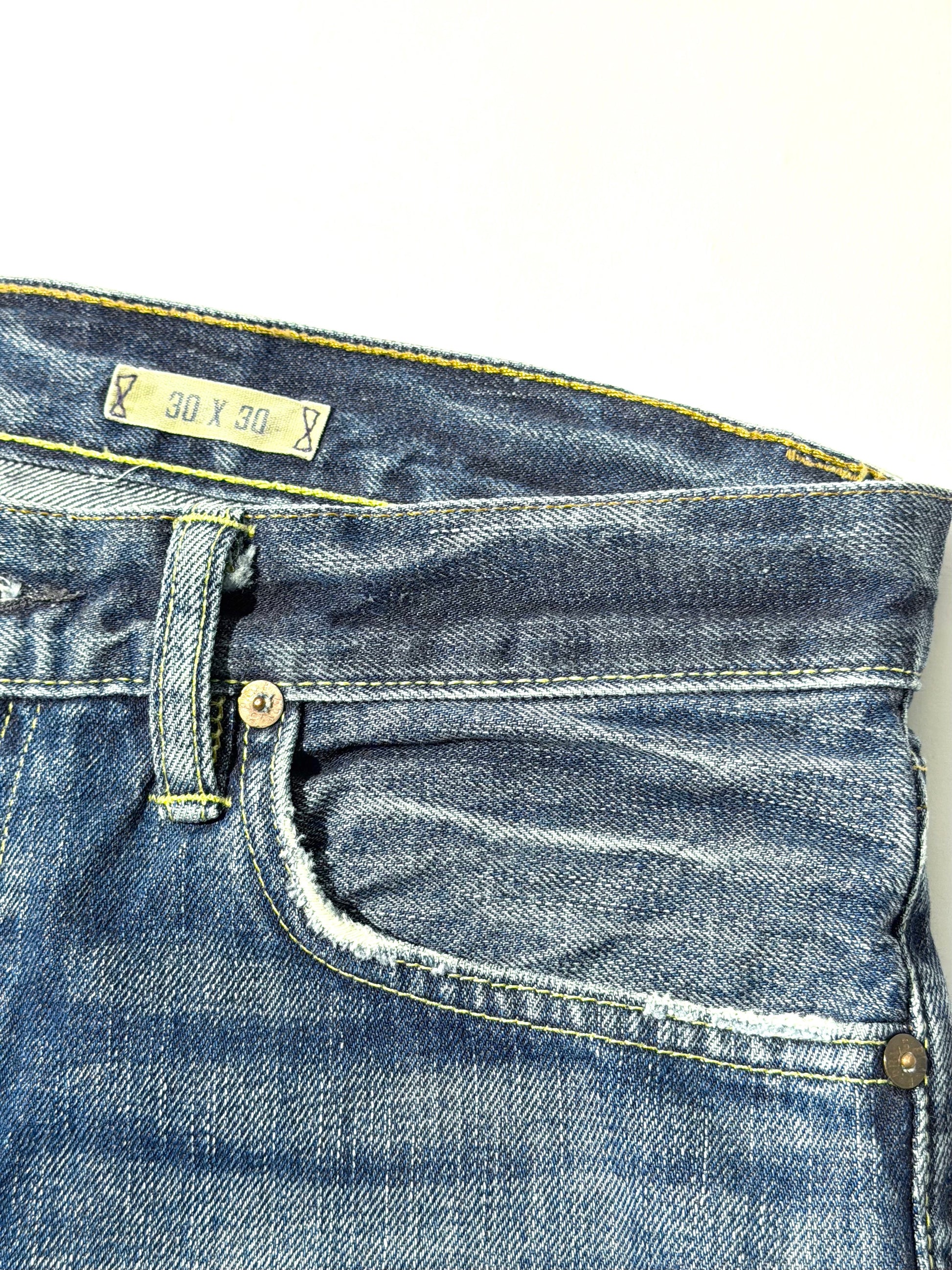 ヴィンテージ加工を施したストレートシルエットの5ポケットパンツ。デニムのフェードやポケット口の擦れなど、古着さながらの自然な風合いが魅力の1本です。メキシコ製。
