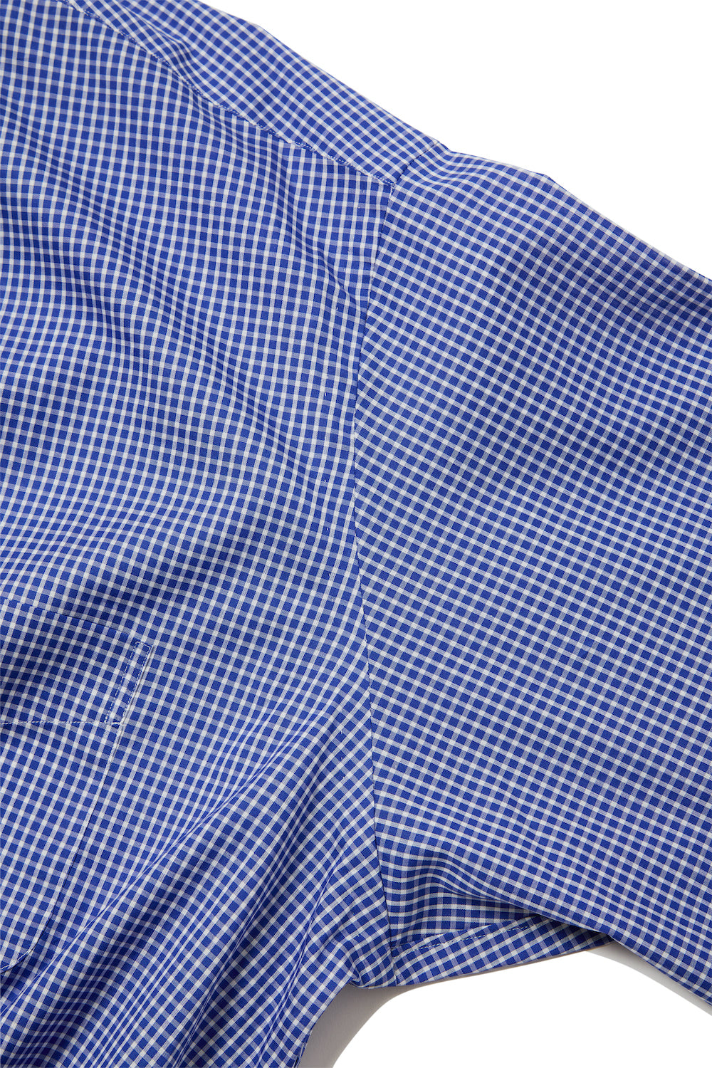 金子: 仕立てはナポリ仕立てを意識しました。たとえばアームの部分は手縫いなんですけど、脇下のステッチのラインがズレているのが分かりますか? これは袖が前にくるように縫っているからなんです。イタリア人の考え方で、人間の身体の構造に合わせてジャケットの袖がすべて前方向に袖がつけられているから、同じようにシャツもそうしようということなんです。ベースはアメリカのシャツなんだけど、イタリア人の考え方によって料理している。それがいちばんの特徴ですね。