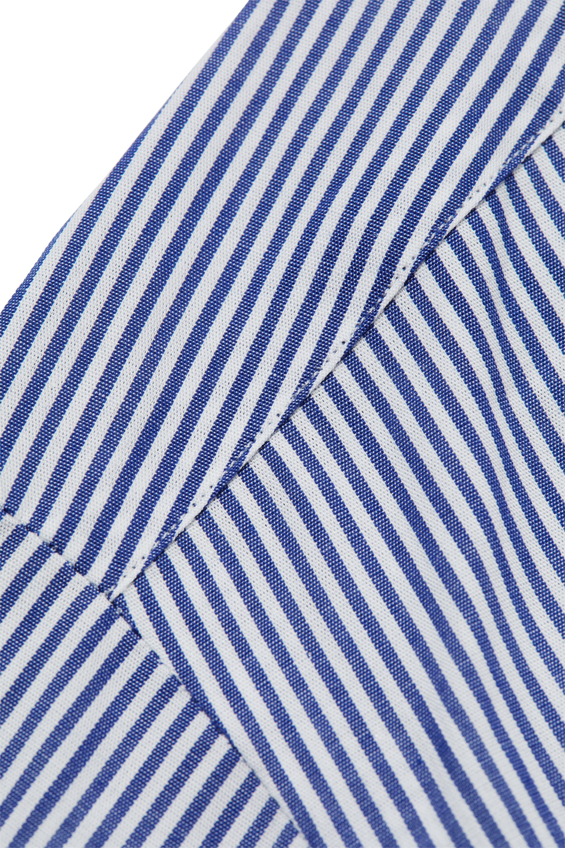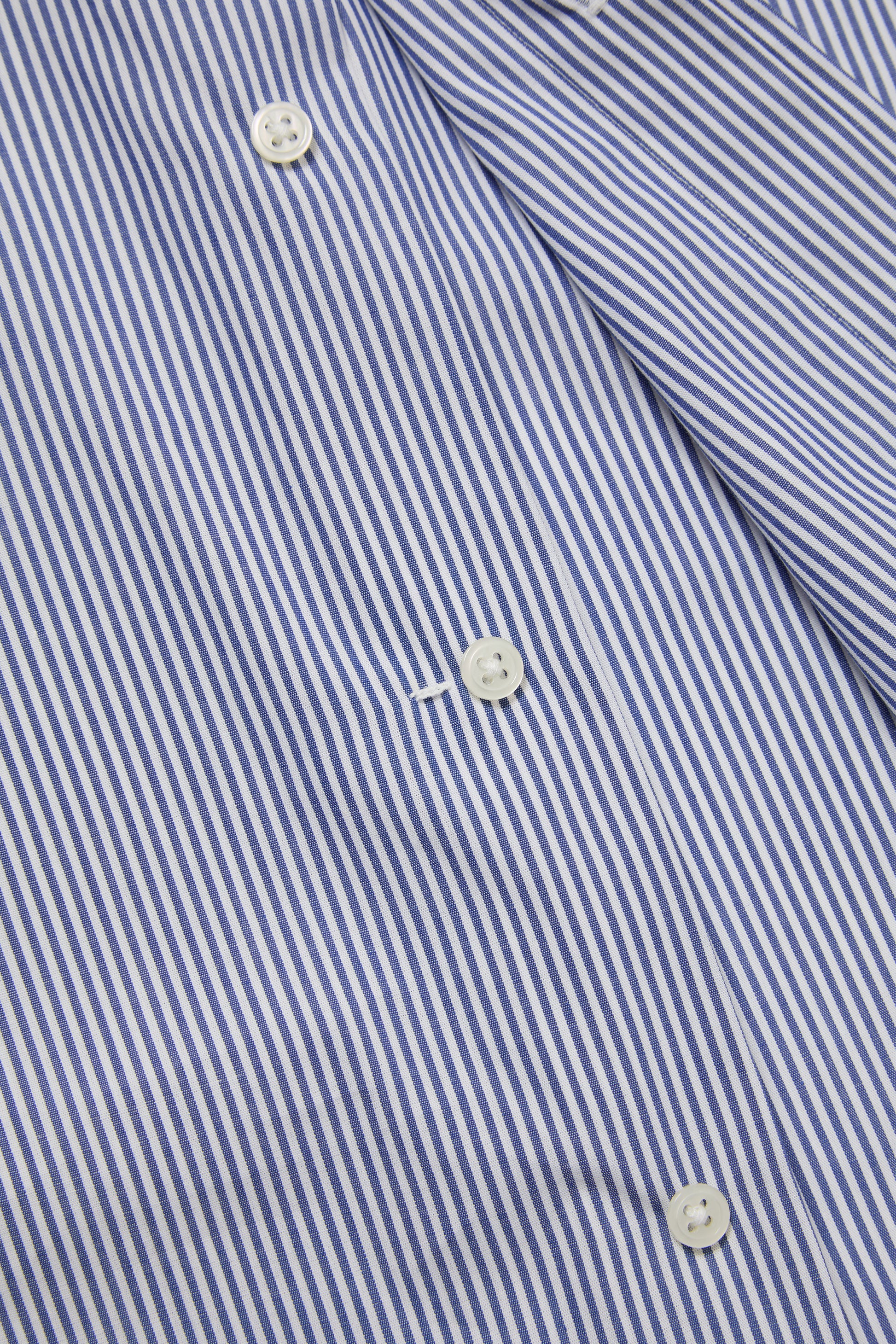 金子: フイナム編集部とのキャッチボールから、まずはストライプがいいんじゃないか? というアイデアが生まれたんです。無地のブロードだとドレスっぽくなりすぎるし、読者の方々は軍パンやチノなどのカジュアルなボトムを穿くひとが多そうだということでしたね。ロンドンストライプってアメリカン・トラディショナルの代表的な柄だし、なんとなくそういうのが気分的にも合いそうだなということで。