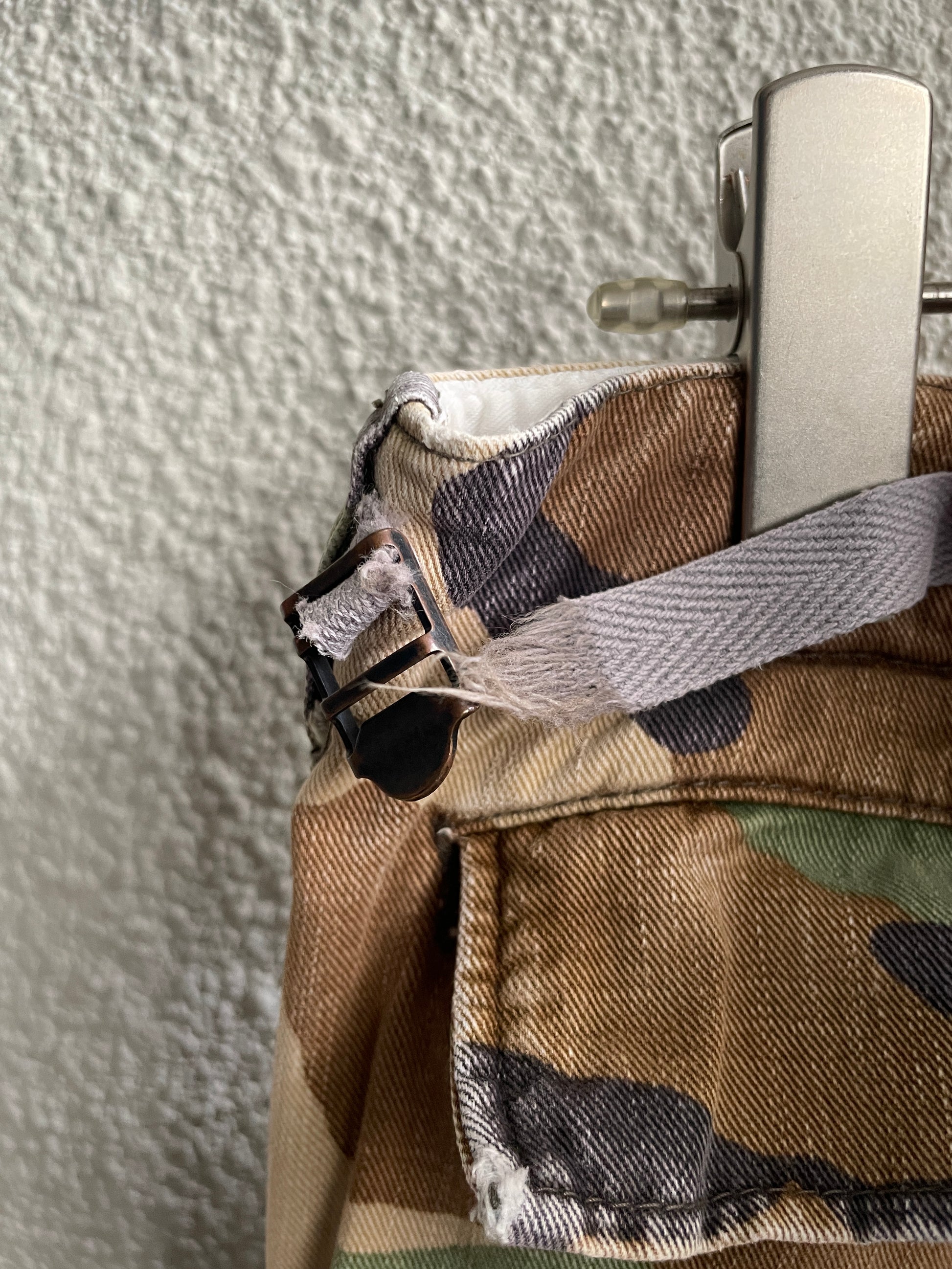 状態: C(※ウエストの左後部分のベルトが切れているのと、左後ろポケットのボタンが1個欠けています)