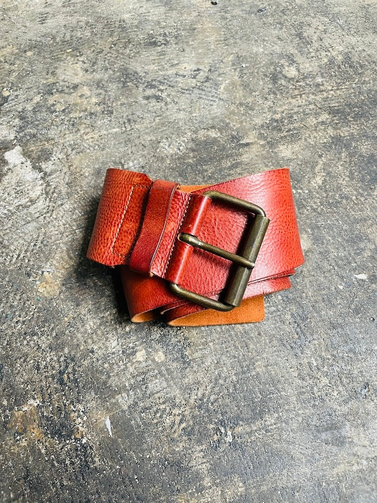 〈メゾン・マルタン・マルジェラ〉のベルトは、手に入れてからほぼ未使用。「ベルトループをパンパンにさせられるベルトを探してた時に邂逅。レディースだったと記憶しています。ただ主流5.5cmのベルトループには入らず、ほぼ未使用のまま」